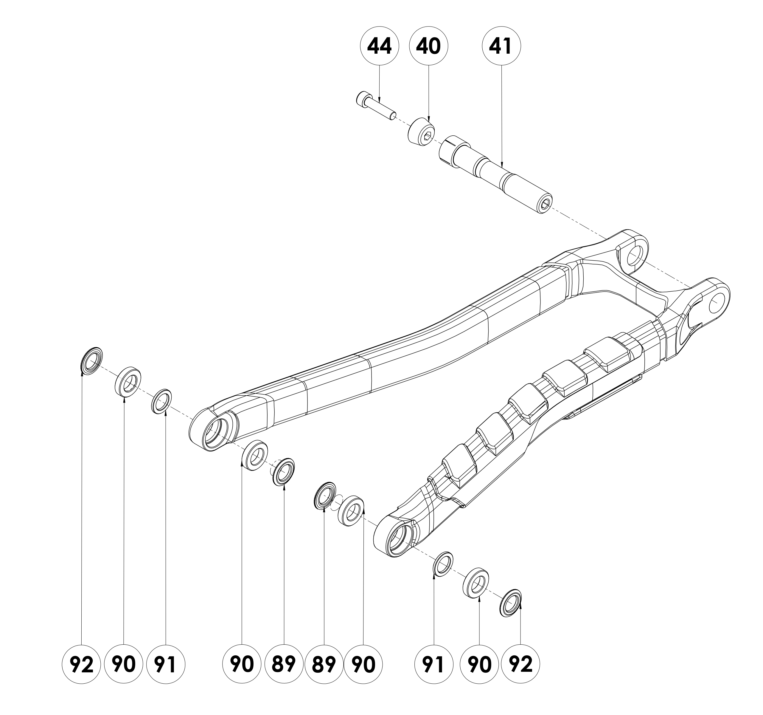 | 40+41+44 | W22DHV5AXLELL | LOWER LINK / CHAIN STAYS AXLE SUPREME DH V5 | Axle 15 N.m / Expander 5 N.m |
